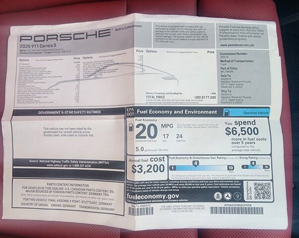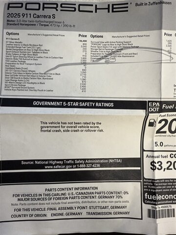 2025 911 Carrera S 473hp $177,505 window sticker! 30K in options!